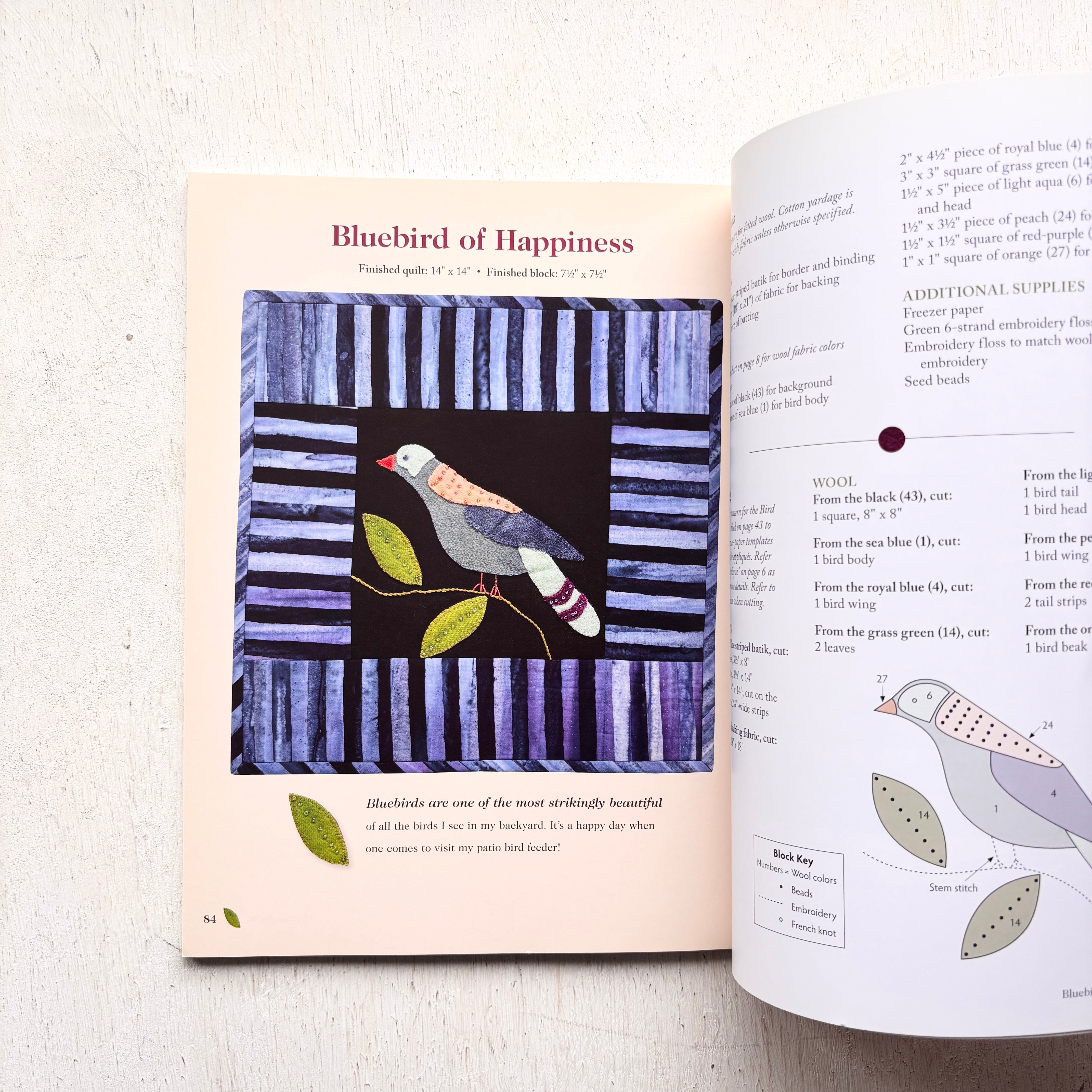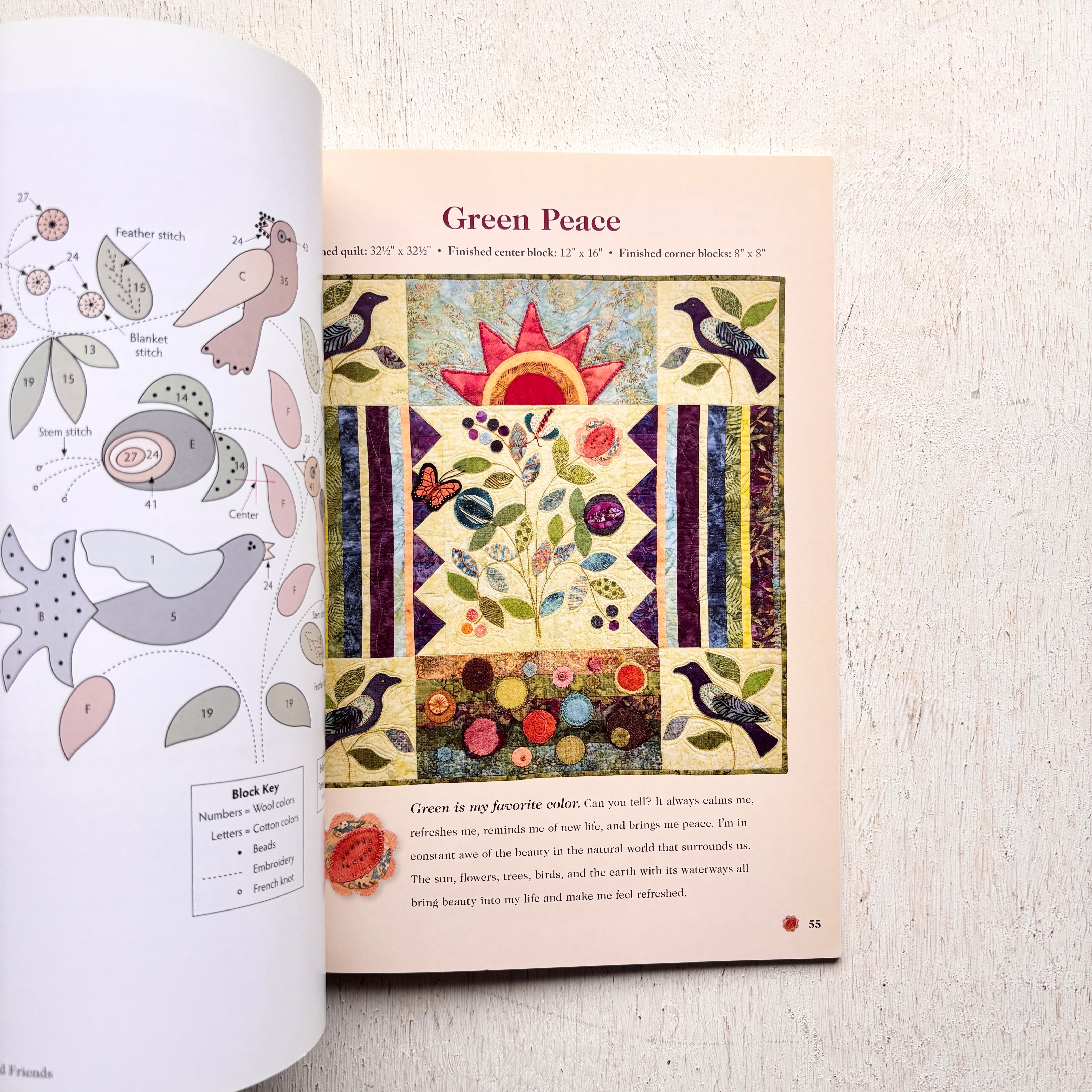 ガーデンデザインのキルティングのプロジェクトを多数収載。草花や鳥、うさぎ、蝶などのモチーフで、キルト作品やパターンを使用した壁掛け、枕、財布を製作します。