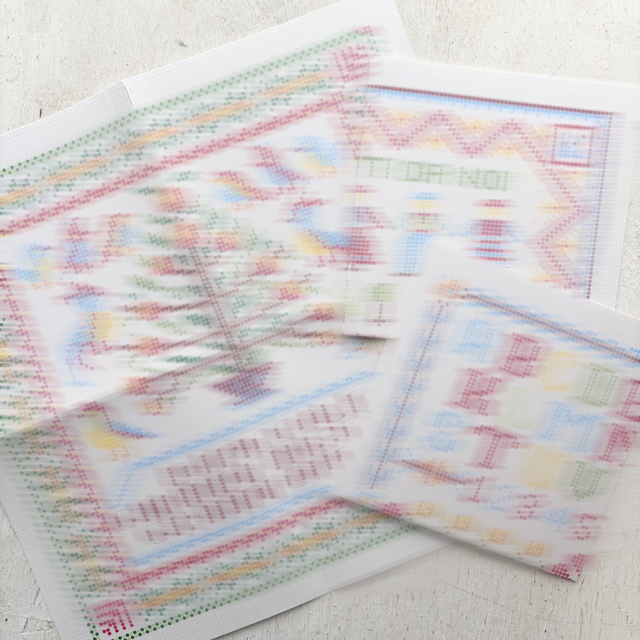 パターン紙にはサンプラーの図案がそれぞれ3例掲載されています。