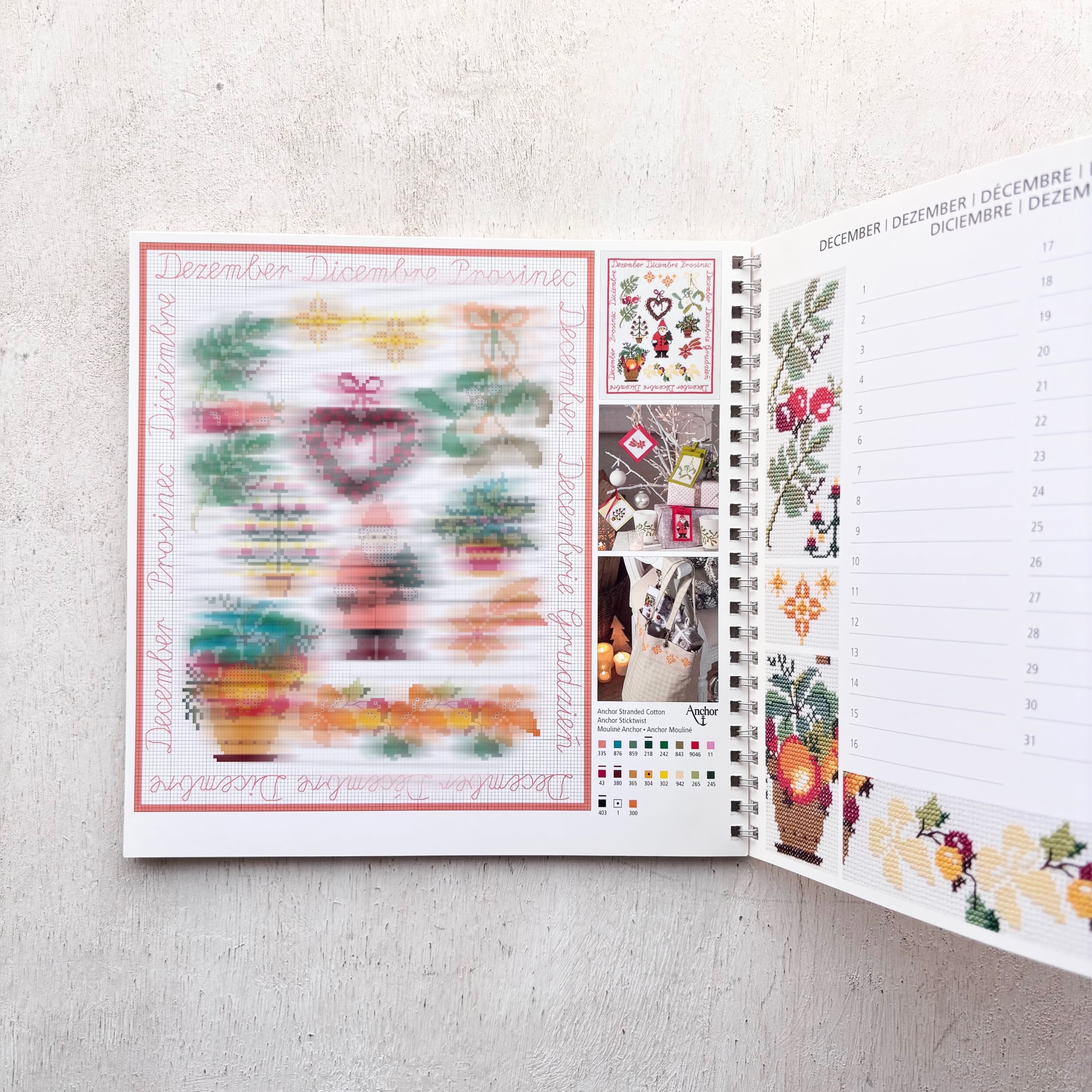 カレンダー形式にパターンを収載したクロスステッチ図案集。