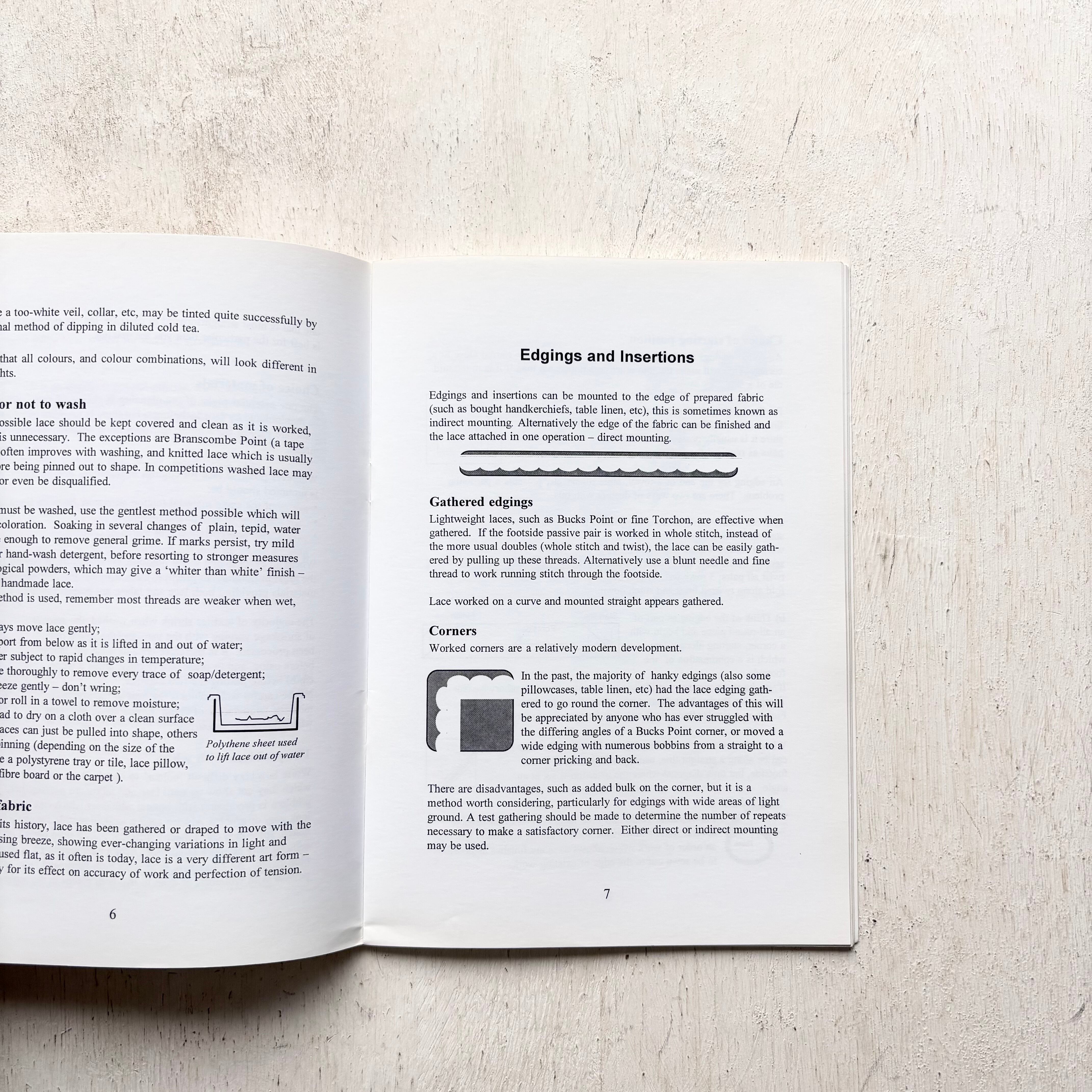 ボビンレースを中心に提案されていますが、ニードルレース、かぎ針編み、タティングレースなど様々な技法に役立つアドバイスが含まれています。