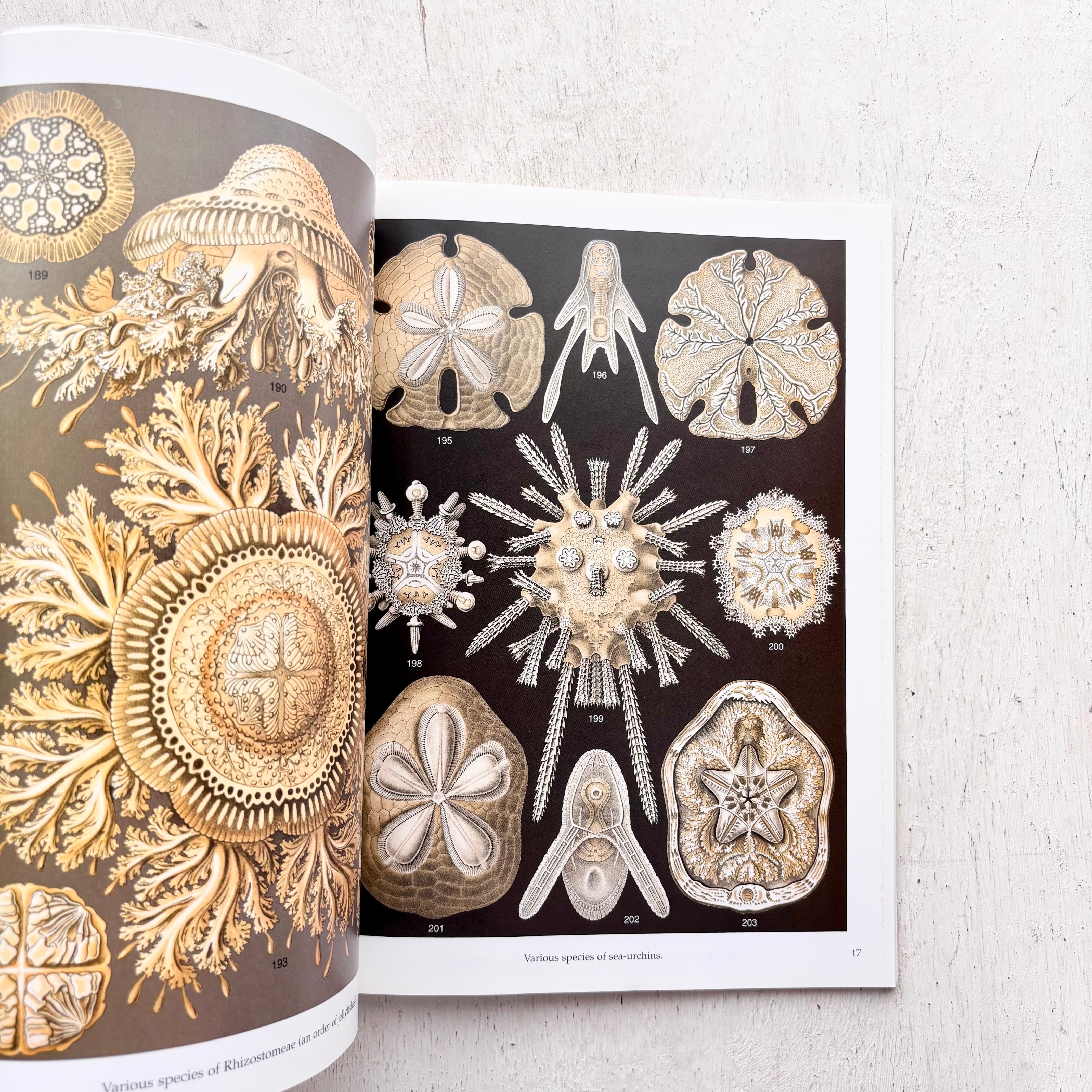 『自然からの形態』より引用された、クモ、カメ、ハチドリ、藻類、ヒトデ、地衣類をはじめとした生物のイラスト図を608点収載。