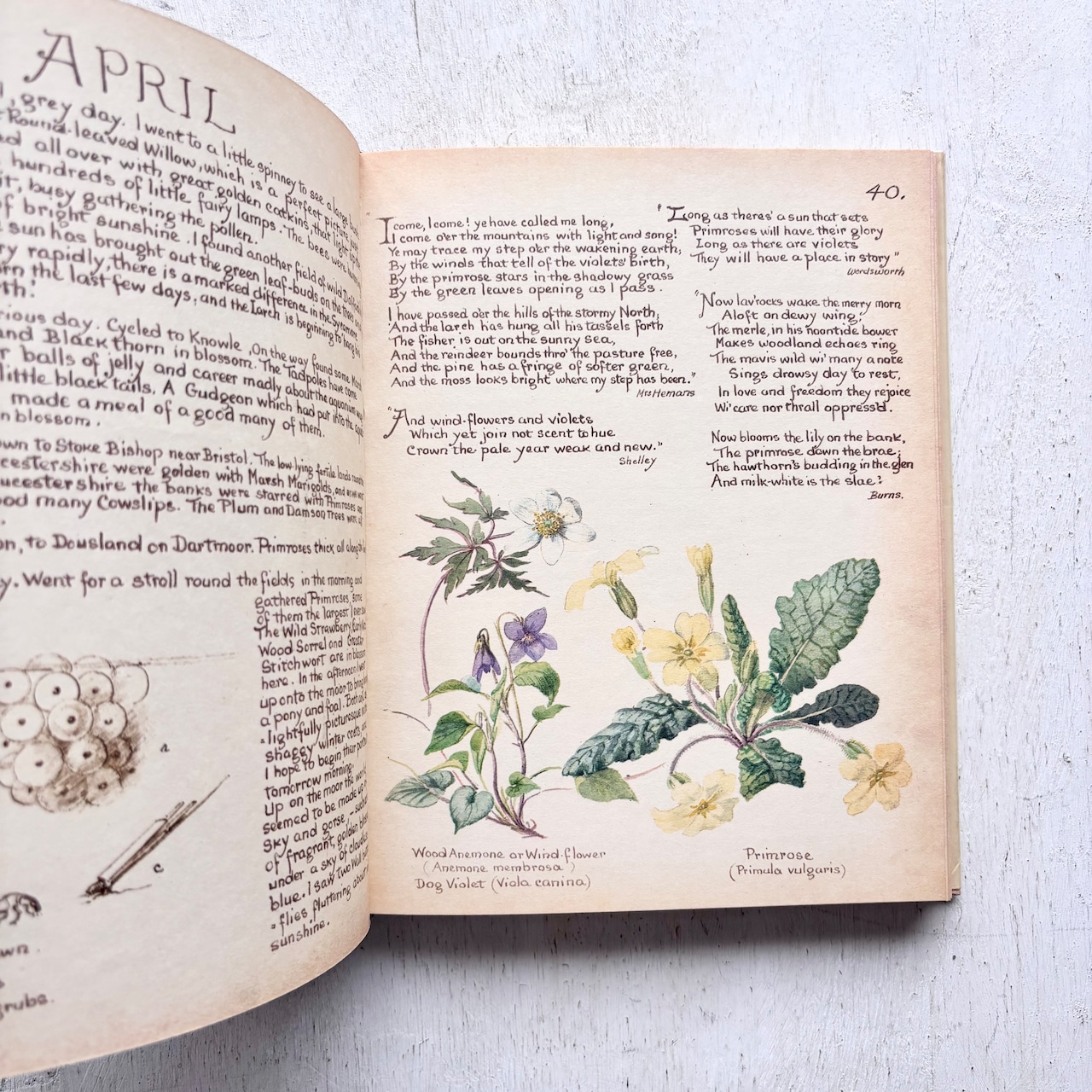 ヴィクトリア朝時代の夫人、イーディス・ホールデンさんにより、イギリスの田園地帯の四季の移り変わりや動植物を言葉と絵で書き留めたもの。
