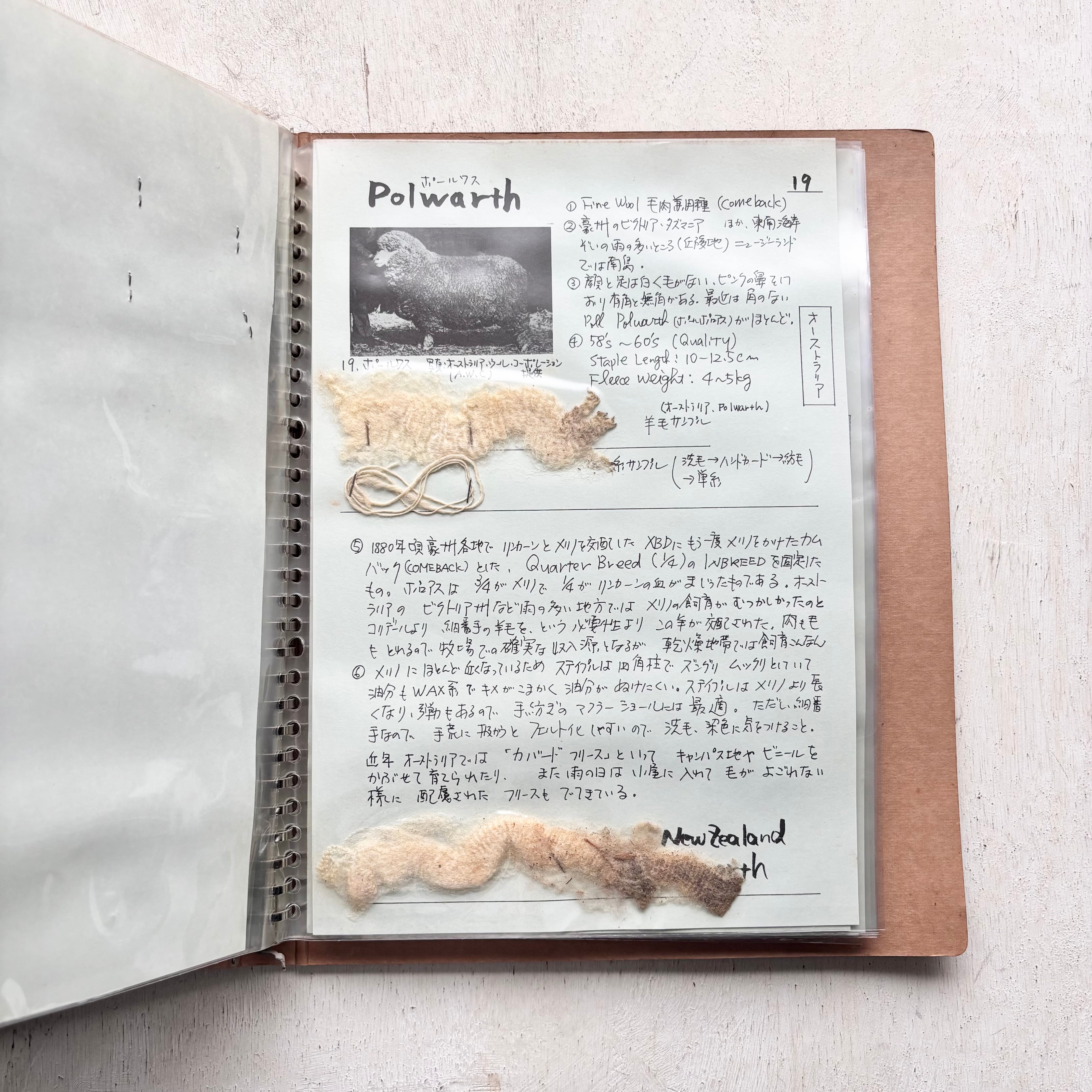 さらにページに留められた実際の羊毛や毛糸を通して、さらに理解を深められる内容です。また、原毛選びの手引きも解説。