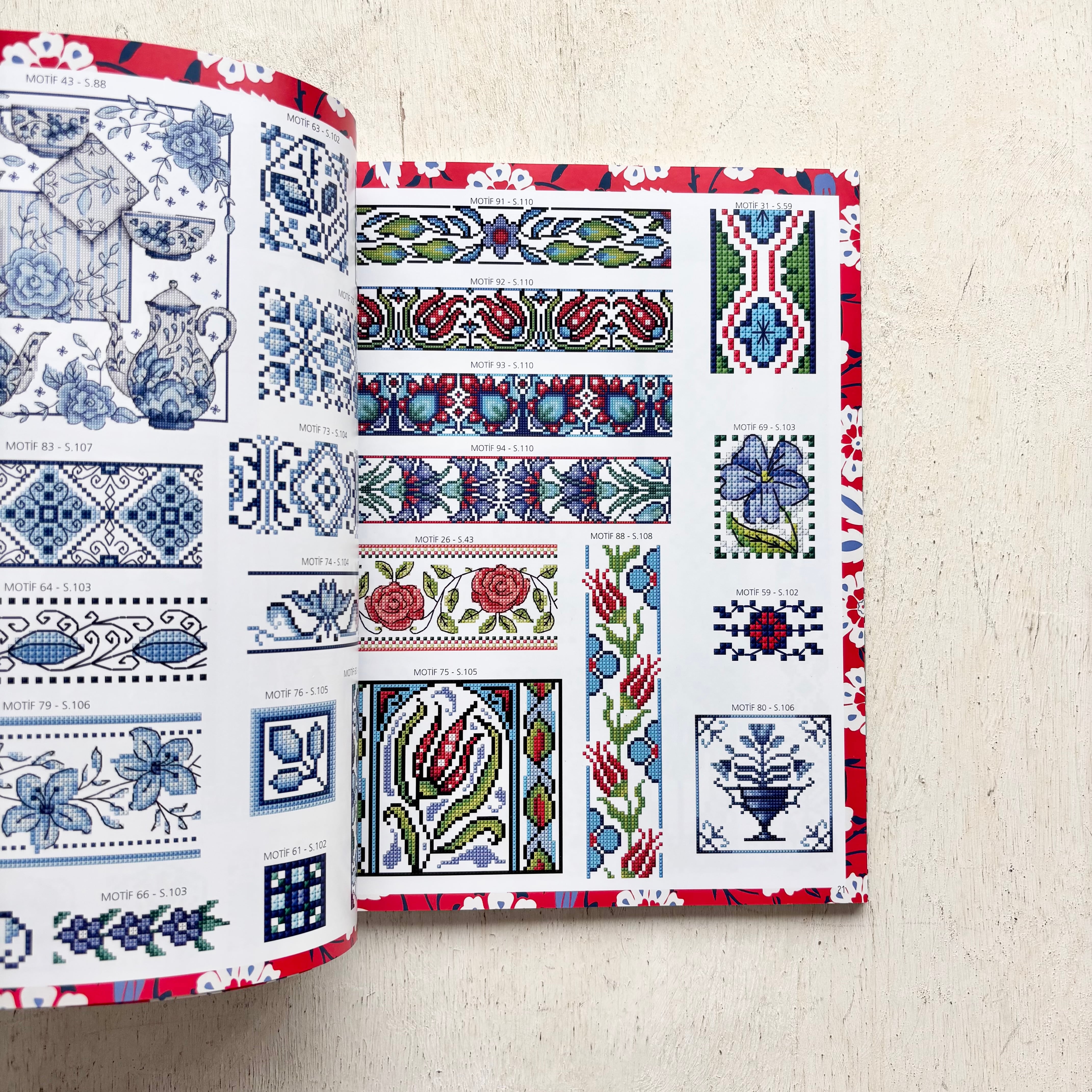 イズニックタイルやデルフトタイルの美しい文様から着想を得た、クロスステッチ図案集です。