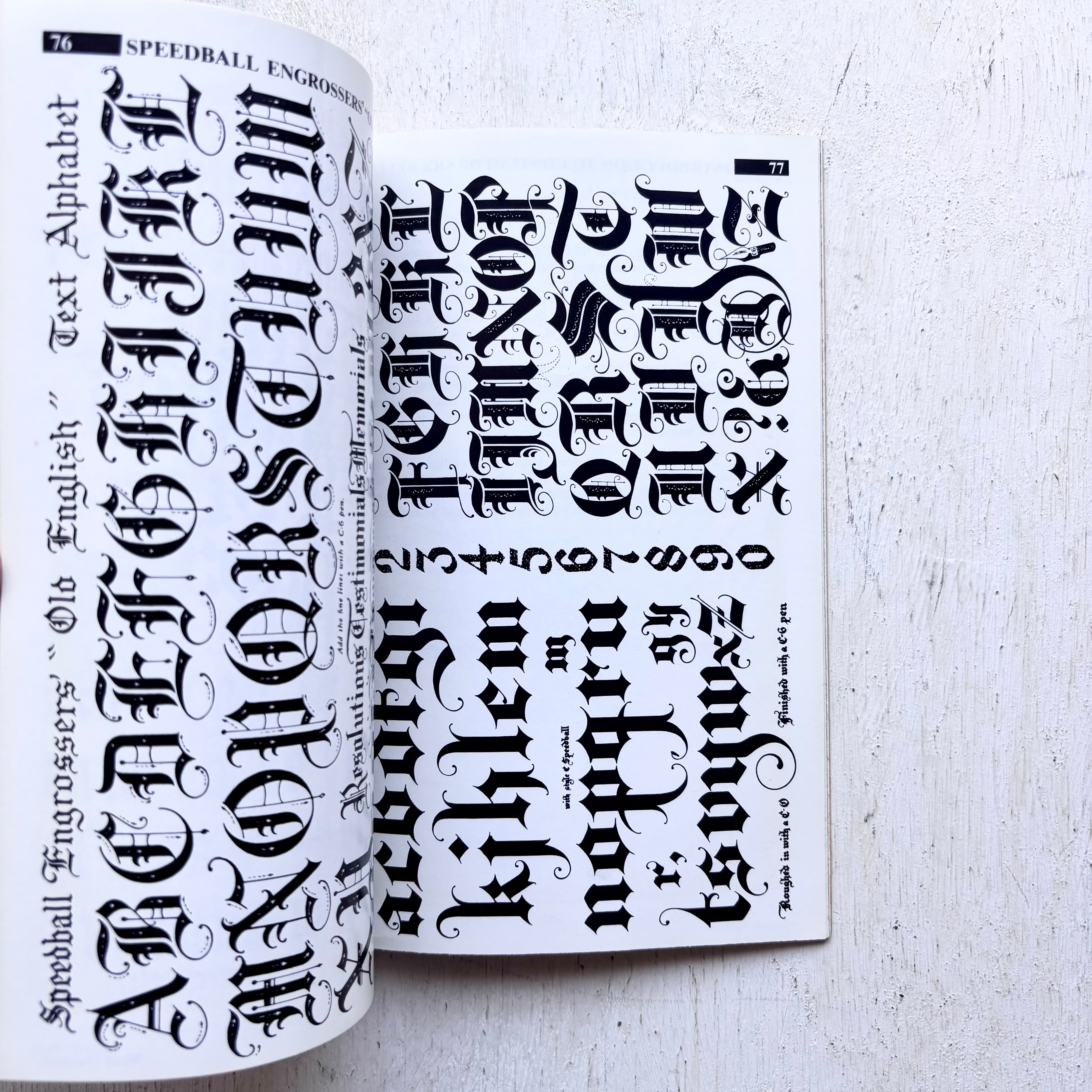 アメリカのカリグラフィーとレタリングの教本、『SPEEDBALL TEXTBOOK』の第21版です。サンセリフ、ローマン、ブラックレター、イタリックなど、多様な書体の作例や書き方を収載。