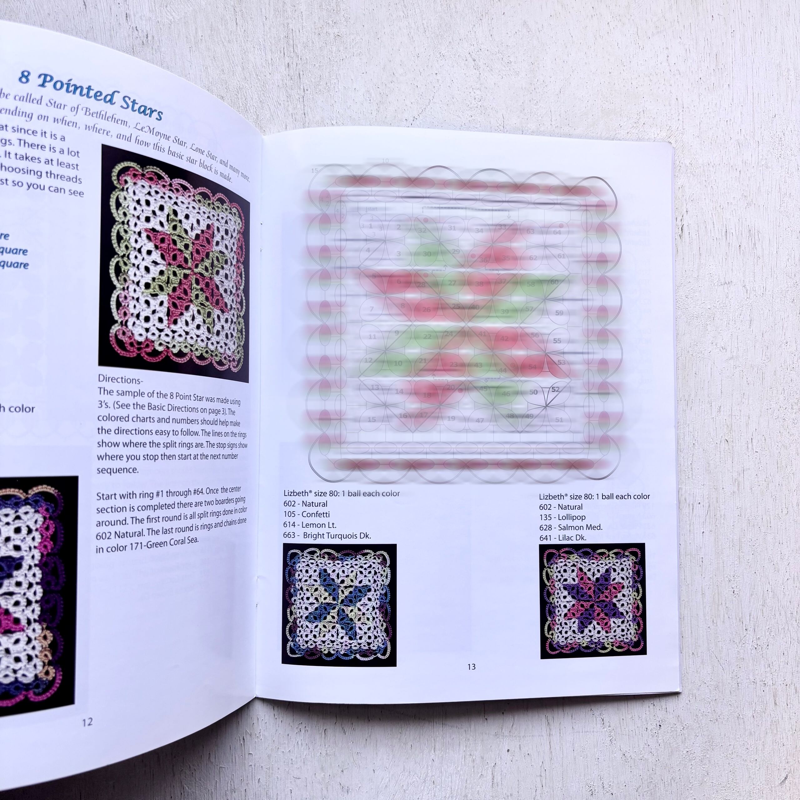 キルトブロックを思わせるデザインを、タティングレースで表現した図案集。