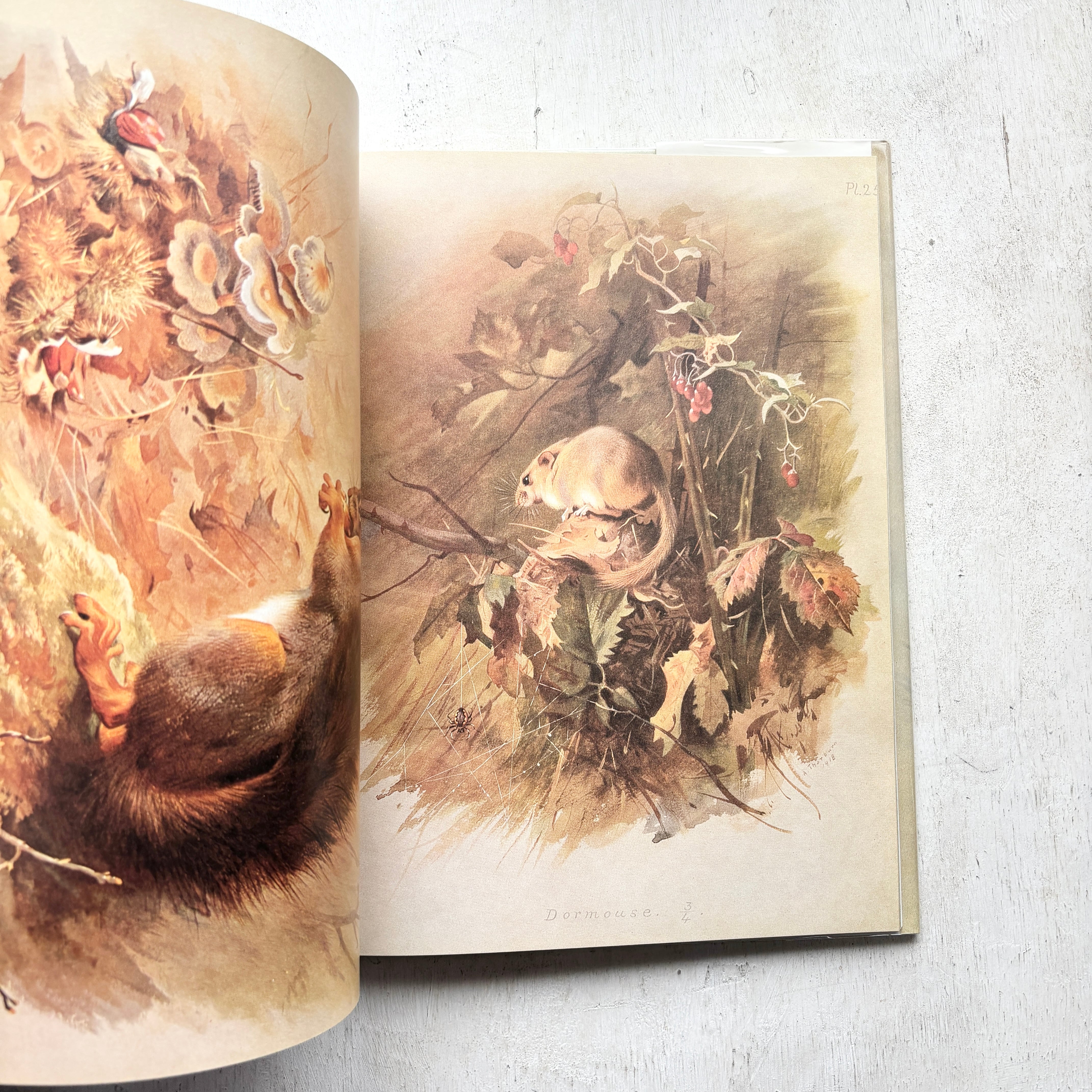 鋭い観察眼と確かな筆致で描かれた、アカリスやテン、キツネなどの動物たちの習作を含む、約50点のフルカラー図版を掲載しています。