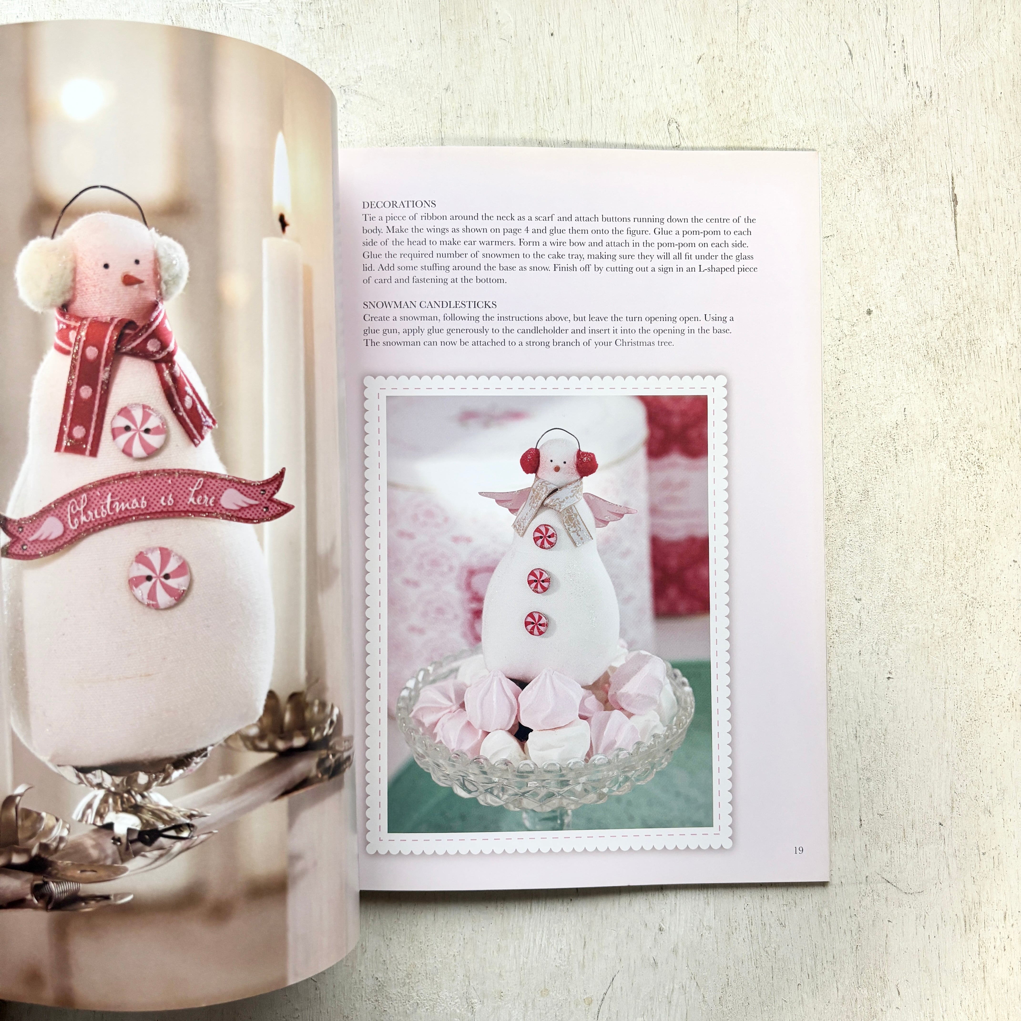 クリスマスデザインのアイテムのアイディアを収載し、お祝いムード満点のサンタクロースや天使、バラ色の頬をした妖精、雪だるまなど、クリスマスならではのモチーフと鮮やかな赤の色使いが楽しい一冊です。