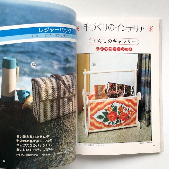 ハマナカの糸で編む夏のバッグ、帽子、インテリア雑貨。タウンバッグ、ショルダーバッグ、ウォールポケット、カーシートなど全56作品を掲載。レトロでモダンな作品の数々は夏向けで使用糸は夏糸です。カラー&モノクロ。作品写真はフルカラーです。