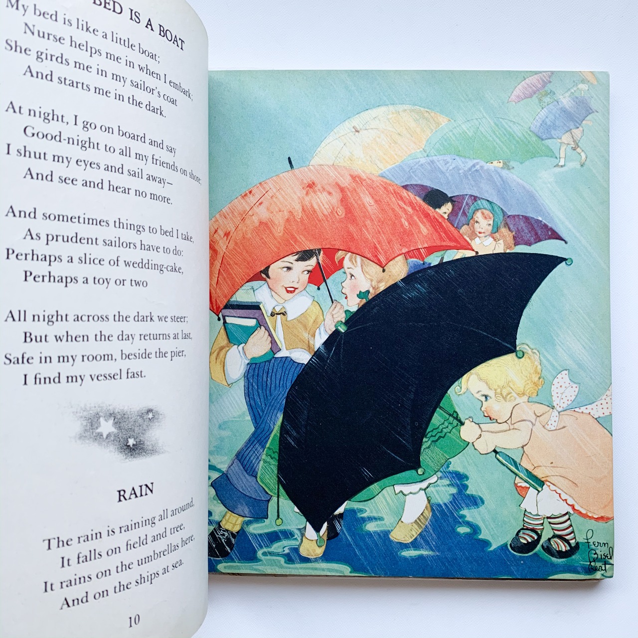 イギリスの詩人Robert Louis Stevensonによる詩に、アメリカのイラストレーターFern Bisel Peatが挿絵を描いた詩集です。鮮やかなカラーイラストも、味わい深いモノクロイラストも魅力的で、詩をいっそう楽しめます。
