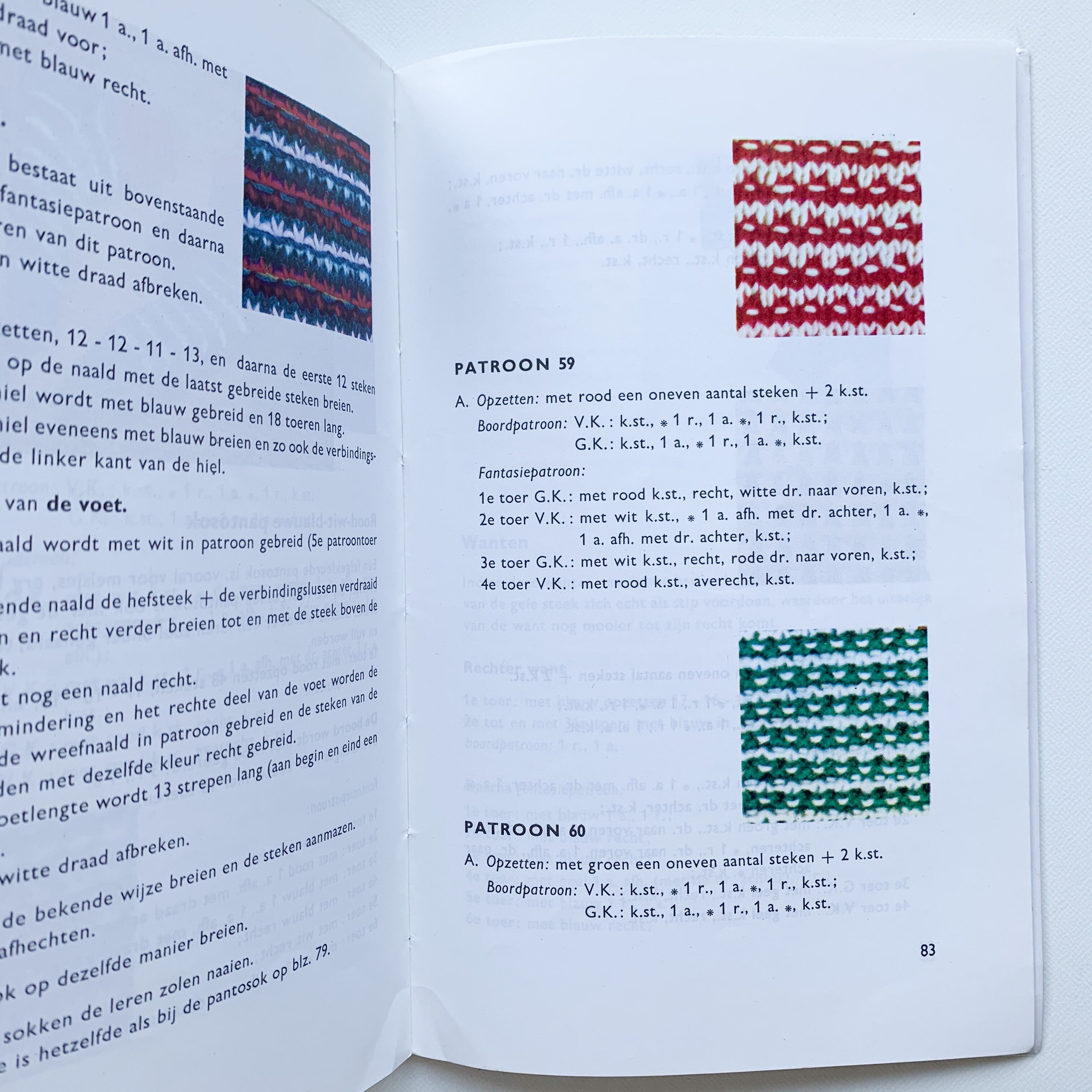 手編みの方法を記した本の第3弾ですが、基本の編み方ができる方はこちら単体で模様集としてお使いいただけます。61種類の模様編み、編み込みのレシピが掲載されていて、そのパターンを使った靴下やブラウスなどの仕立方も紹介されています。編み図はありません。