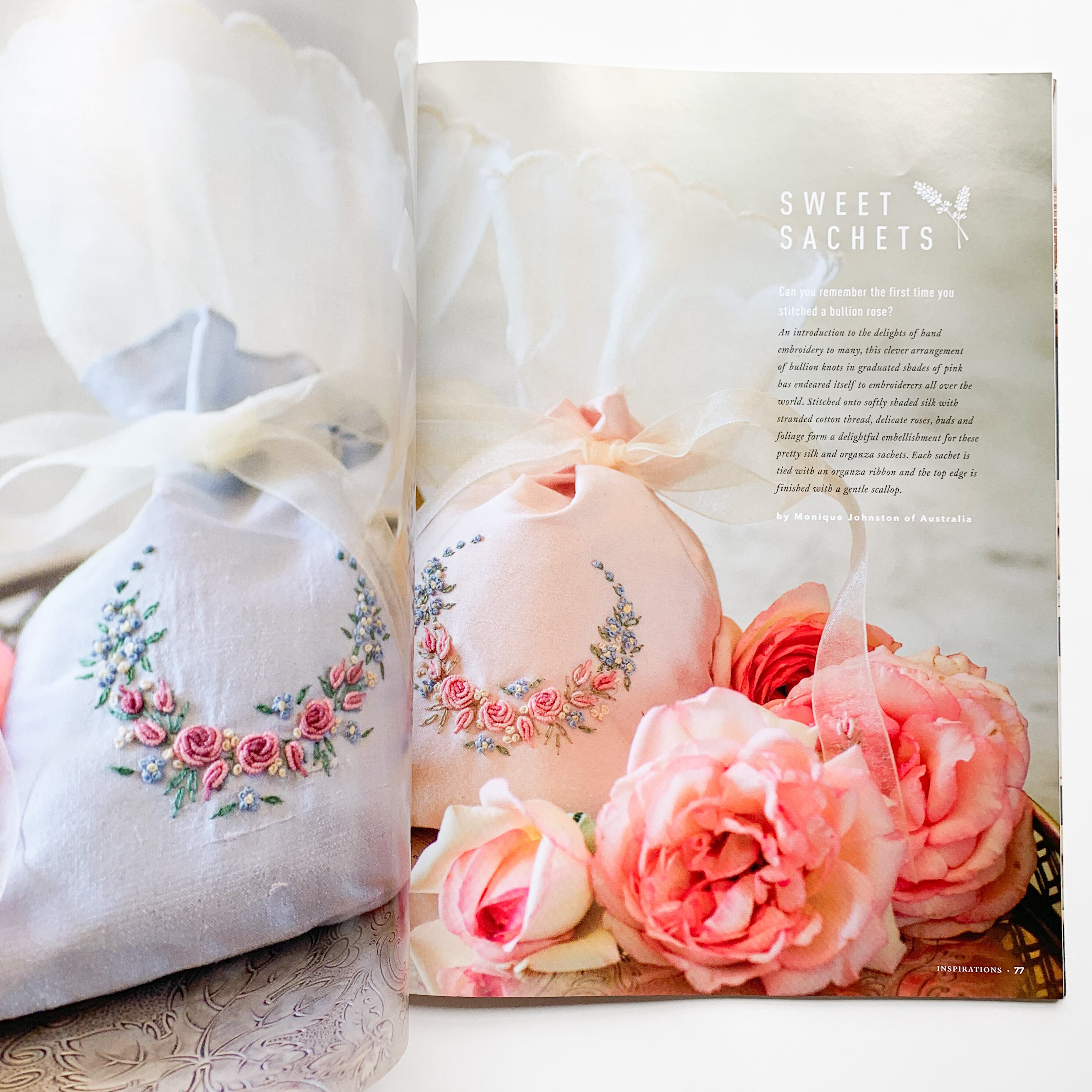 オーストラリアの手芸雑誌、The world's most beautiful needlework INSPIRATION のバックナンバーです。ビーズと刺繍で彩る花瓶のパッチワーク、アンティークなお花のリボン刺繍、プレゼントにぴったりなバラのサシェなど魅力的な作品が満載です。巻末に10作品の実寸大刺繍パターンや作り方の解説が付属しています。