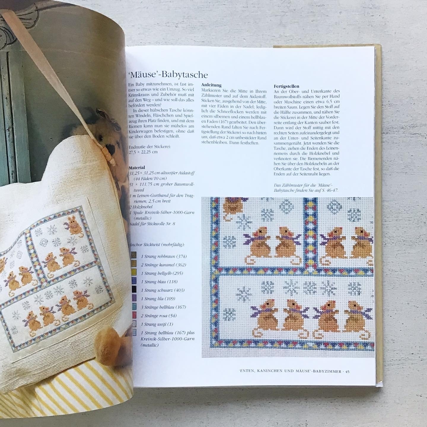 家の中のキッチン、子供部屋、バスルーム、ベッドルームなど、それぞれの場所に合わせたアルファベットや数字・お花・動物などのクロスステッチデザインが40点以上掲載されております。本文はドイツ語になりますが、完成作品も図案も全てカラーで見る事が出来ますので、非常に分かりやすくなっております。