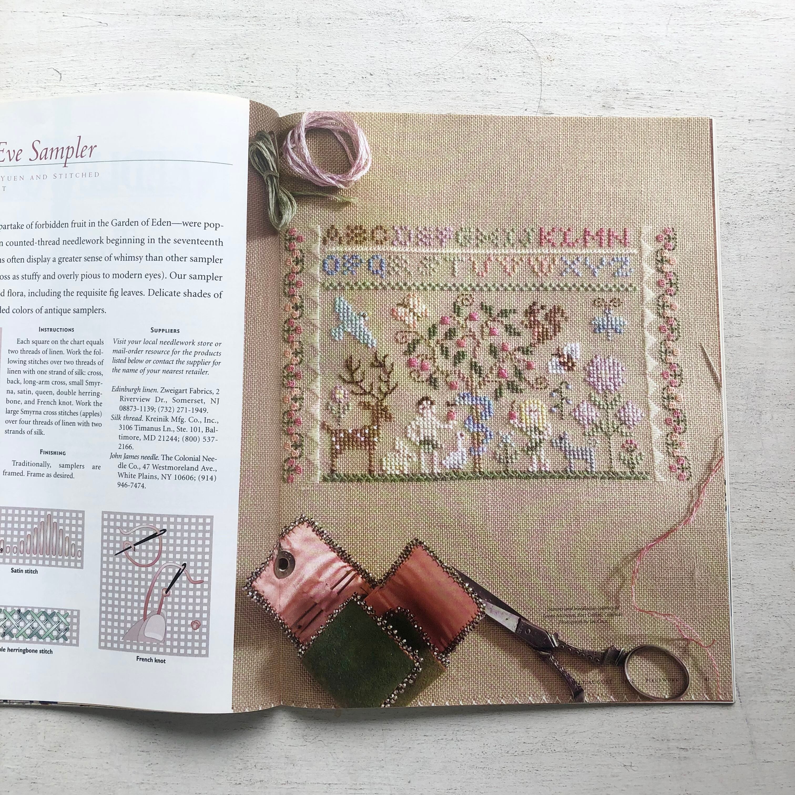 クロスステッチやニードルポイント、ニット、かぎ針編み、サンプラー、ビーズ刺繍など多岐にわたる手法を用いたアイテムを紹介。それぞれ個性のあるアイテム揃いです。一部図案が掲載されています。