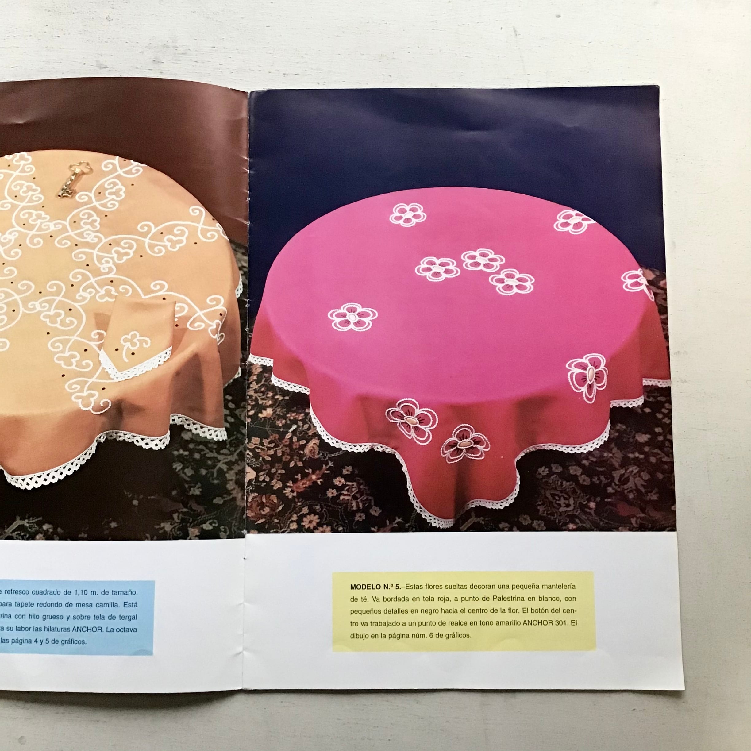 スペインの手芸雑誌「REALCE」のバックナンバー。パレストリーナステッチを用いて制作されたテーブルクロスが複数紹介されています。