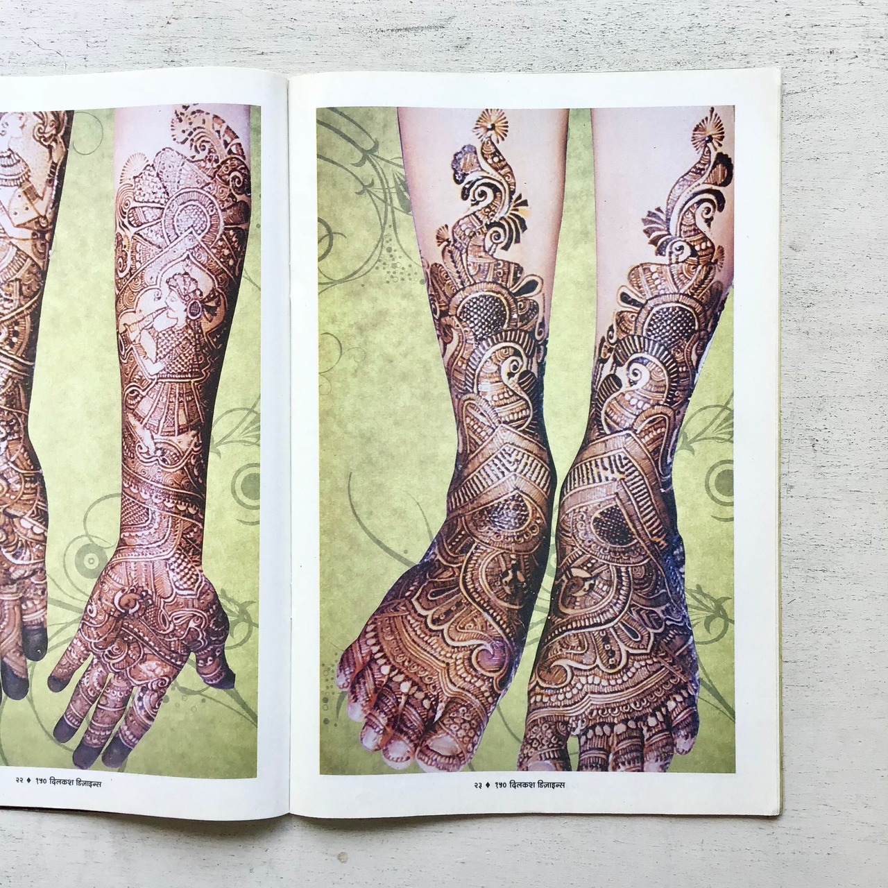 インドのヘナタトゥーのデザインを紹介する雑誌"सहेली की प्रस्तुति"のバックナンバー。デザイナー、ヤスミン・カーンによって考案された足や腕、手に施すヘナタトゥーのデザインを多数掲載しています。