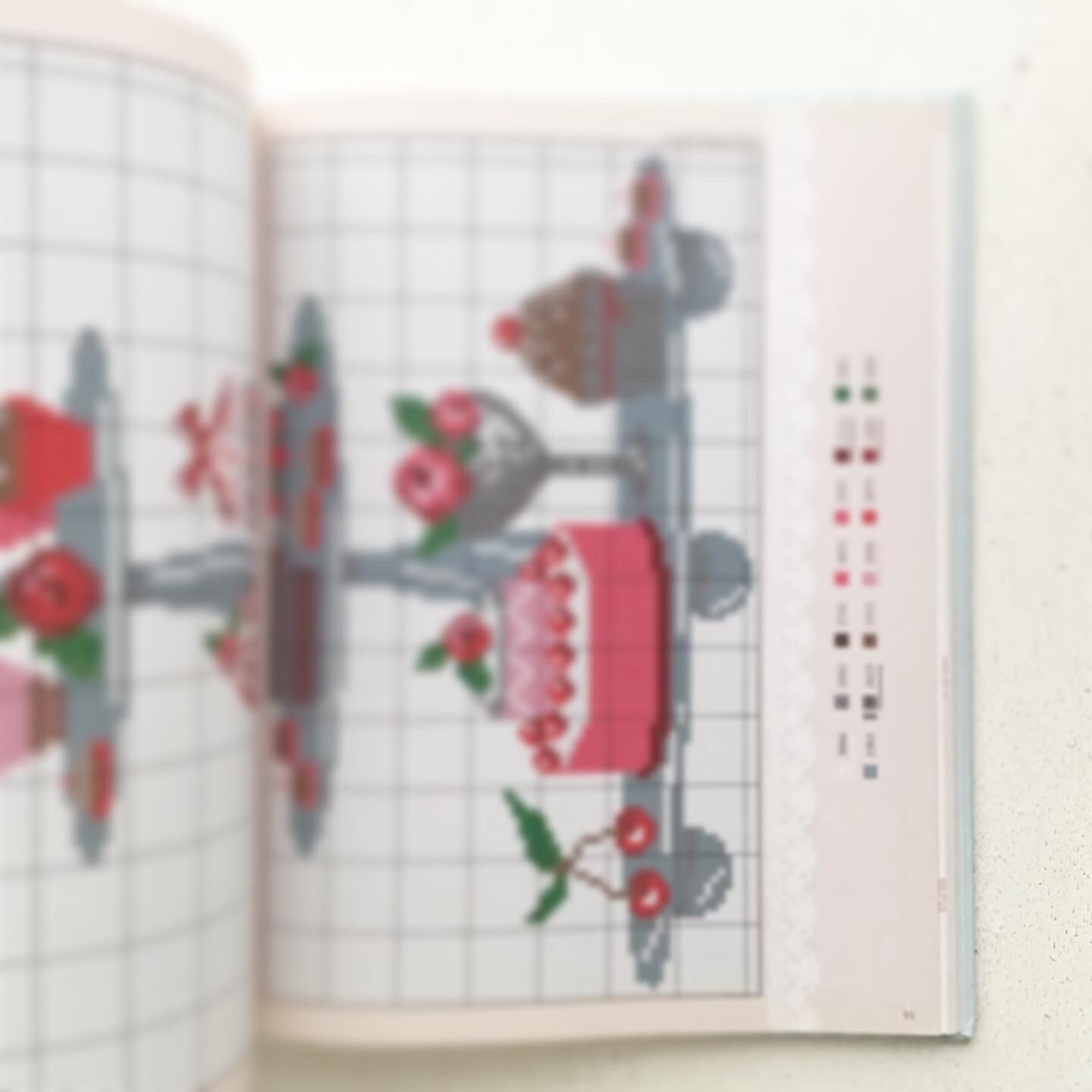 おやつやベーカリーのクロスステッチの図案集。またそれに関連したテキスタイルや装飾デザインも紹介。