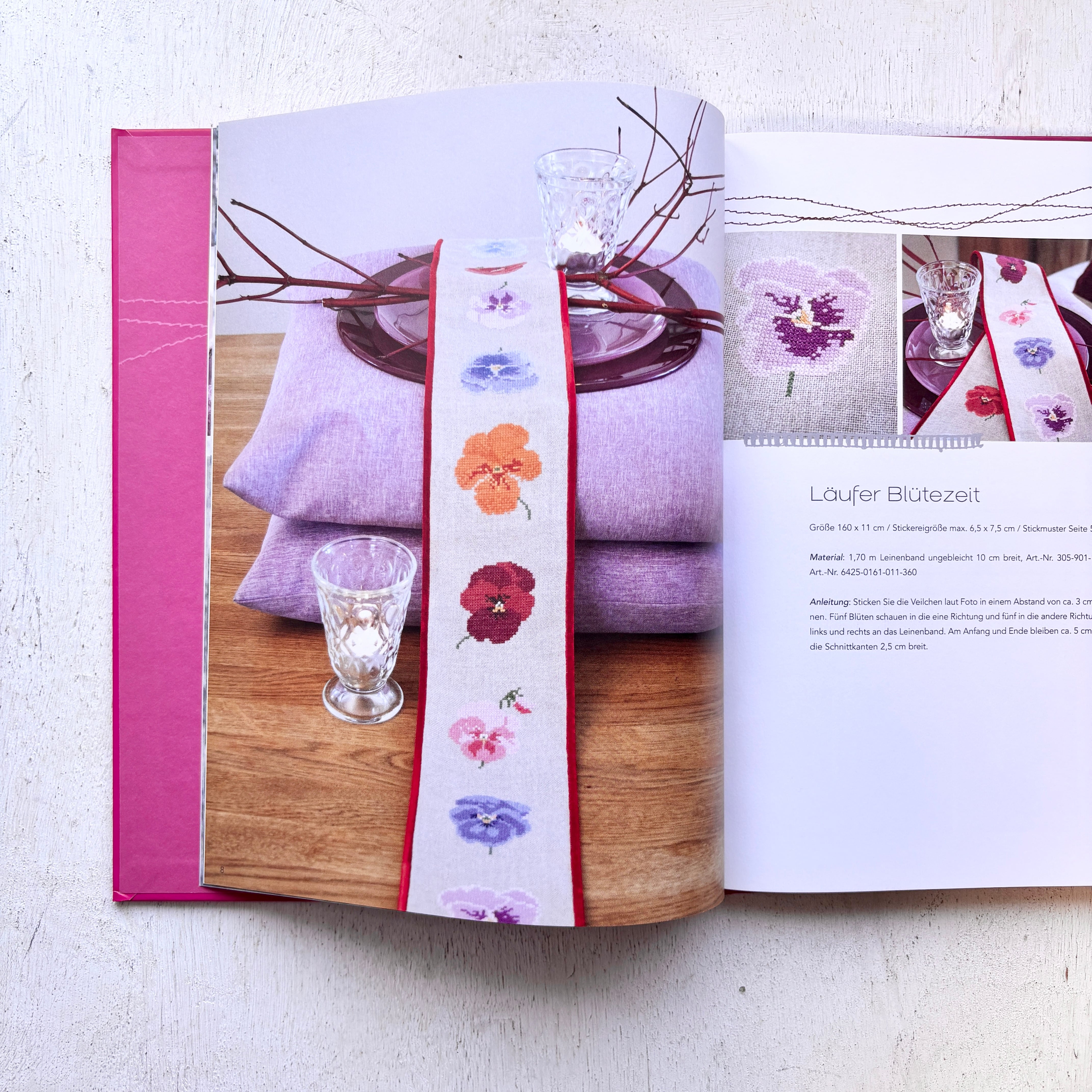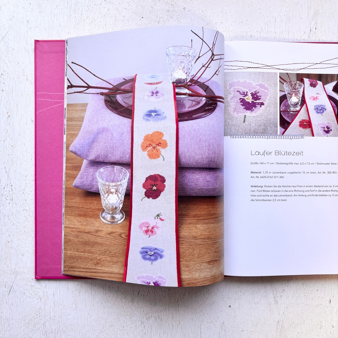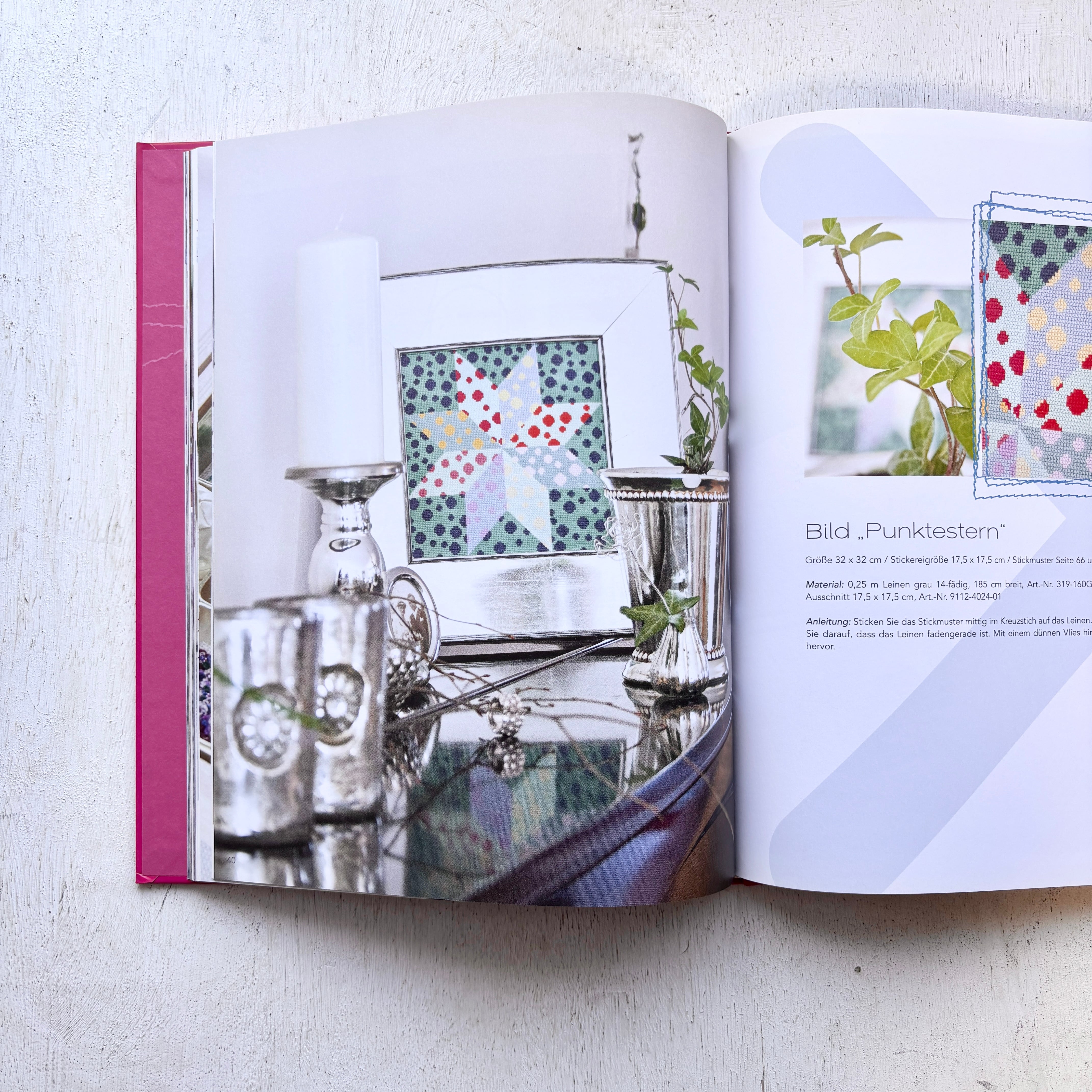 クッション、バッグ、ランナー、ブランケット、絵画、カードなどのテキスタイルデザインに刺繍を組み合わせた、カラフルで素敵な作品づくりを多数お楽しみ頂けます。