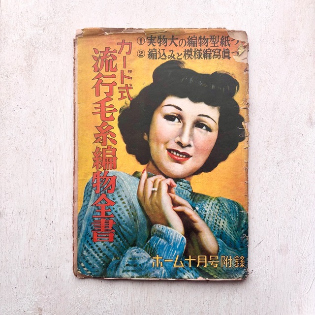 ホーム十月号付録 発行/ ホーム社 昭和二十四年 ペーパーバック 21×30.5cm 16p テキスト/日本語 1949年に発行された、婦人家庭雑誌『ホーム』の付録です。 カーディガンやブラウス、セーターといった婦人服をはじめ、子供服やチョッキなど男性用の衣類や、模様編みの編み方を掲載。 昭和ならではのレトロなデザインが楽しめる内容です。 実物大の編物型紙は付属しておりません。 経年によるイタミが全体的にございます。